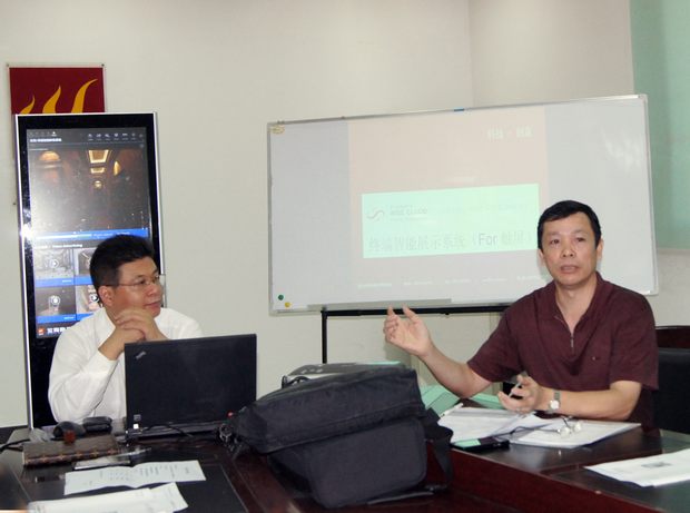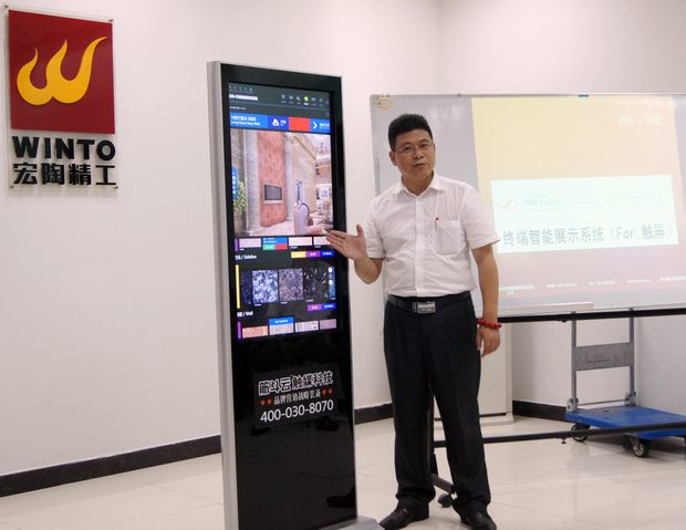 触媒营销培训环节,钟铁军首先介绍了筋斗云与丝瓜视频免费观看陶瓷合作开发的“终端智能展示、导购系统”参数概况及触媒营销优势,着重讲解、演示了触摸屏的使用方法,通过高清晰的静态图像和动态视频彰显了企业的实力,进一步带动丝瓜视频免费观看终端销售,真正实现运筹千里、决胜终端的目标。